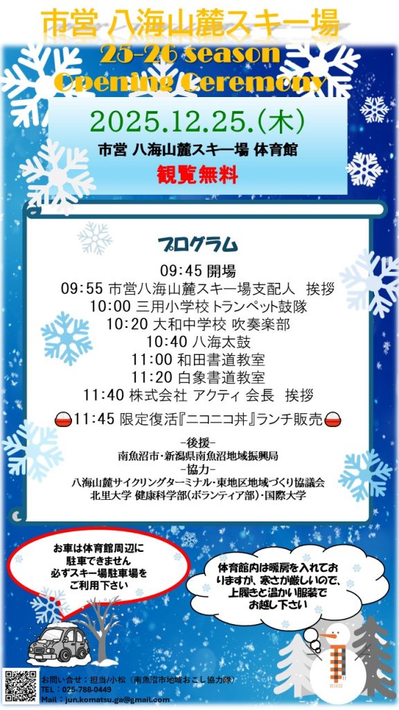 12/25(木) 市営八海山麓スキー場 25-26season Opening Ceremony 開催