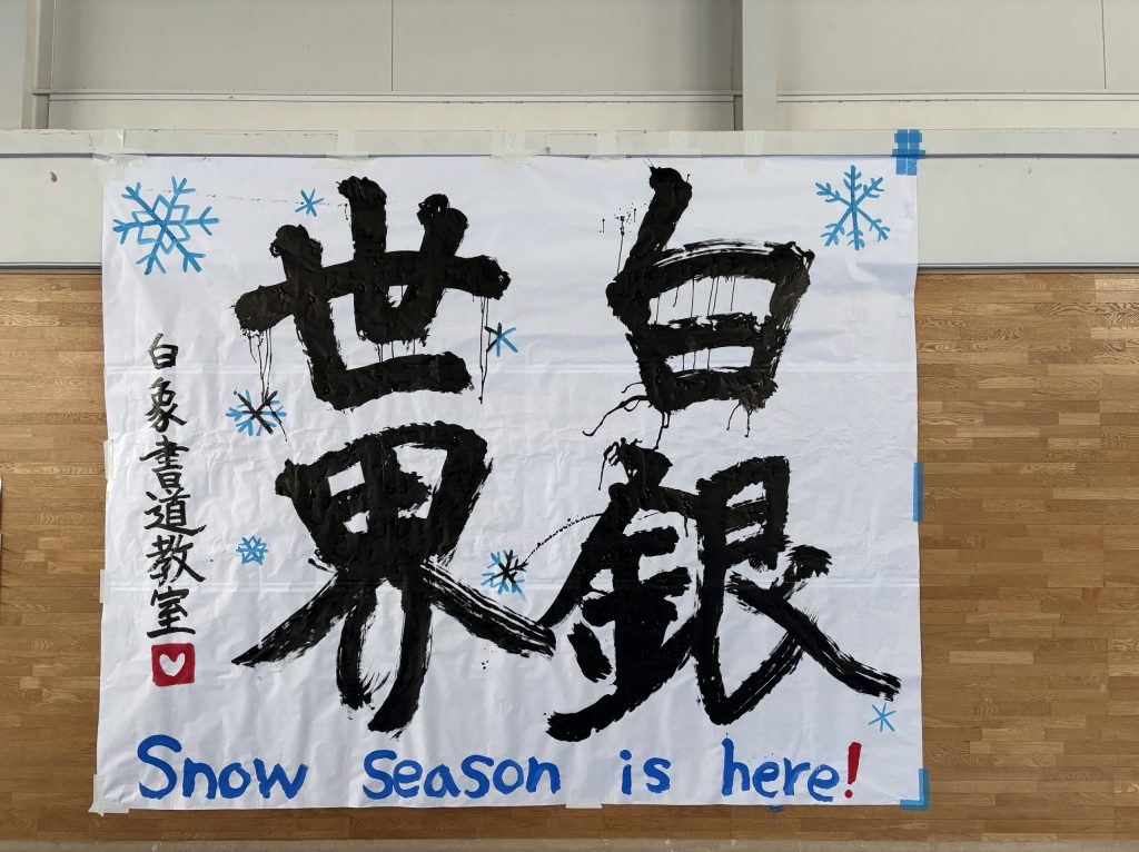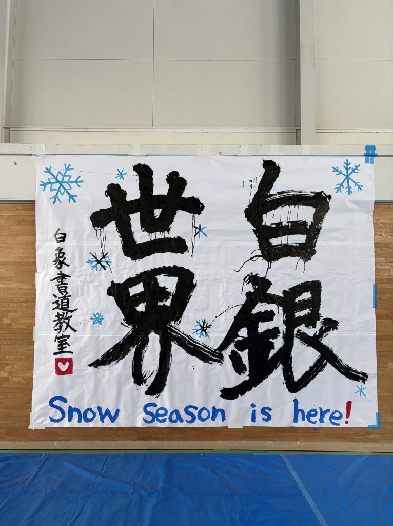 なお、書道パフォーマンスで書き上げていただいた作品は本日(1/5)より、八海山麓勤労者体育館内に展示(スキー場クローズまで)してありますので、ご覧いただきたい方は、八海山麓サイクリングターミナル支配人までご連絡下さい。